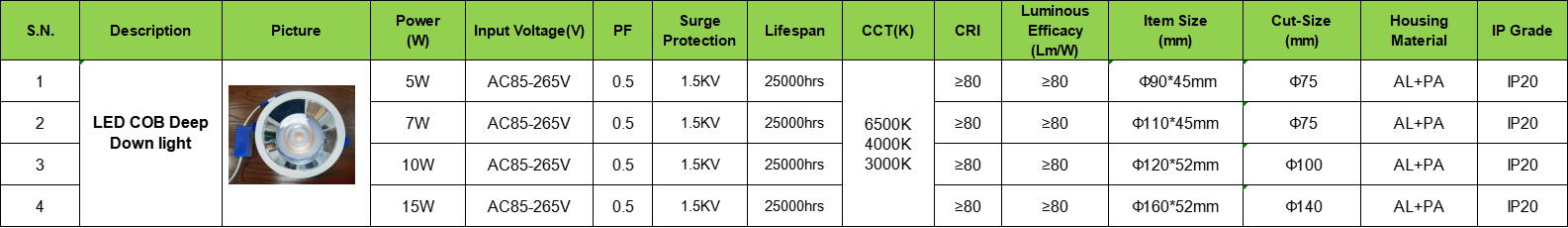 • Cob malalim na ilaw kisame light anti-glare down lamp Cob malalim na ilaw kisame light anti-glare down lamp